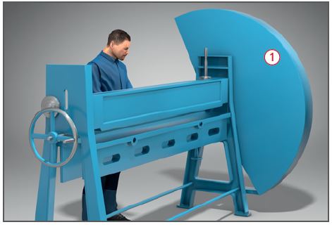 Bei kraftbetriebenen Abkantmaschinen sind mögliche Quetsch- und Scherstellen zwischen Maschinenständer und Biegewange mit Abweisblechen zu verkleiden .