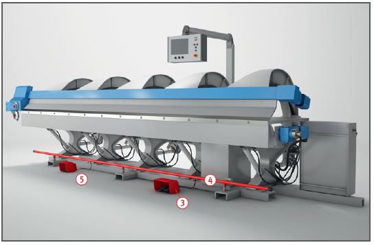 Schwenkbiegemaschinen mit Arbeitslängen über 2,5 m müssen mindestens zwei leicht erreichbare Not-Halt-Einrichtungen besitzen.