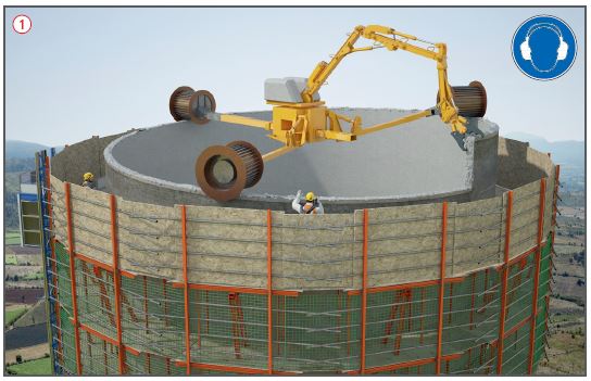 Schornsteinbänder nur entsprechend dem Fortgang der Arbeiten entfernen. Unbeabsichtigtes Ausbrechen durch das Spannen zusätzlicher Drahtseile verhindern.