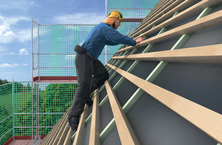 - Bei falscher Dimensionierung und/oder unzureichender Qualität von Dachlatten können diese beim Begehen brechen und es kann zum Absturzunfall kommen.