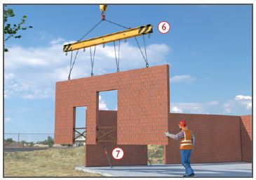 - Fertigteile vor dem Lösen der Lastaufnahmemittel so sichern, dass sie nicht umkippen, abstürzen oder sonst ihre Lage verändern können. Wechselnde Stabilitätsbedingungen berücksichtigen.