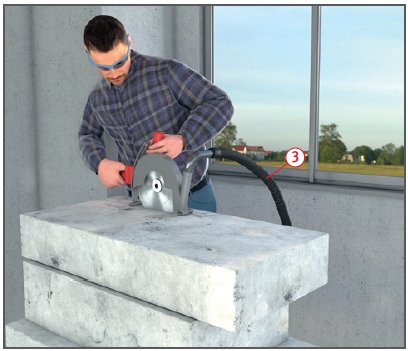 - Bei der Bearbeitung quarzhaltiger Materialien vor allem mit Maschinen zum Sägen, Fräsen, Schleifen, Polieren kann gesundheitsschädlicher Feinstaub auftreten.