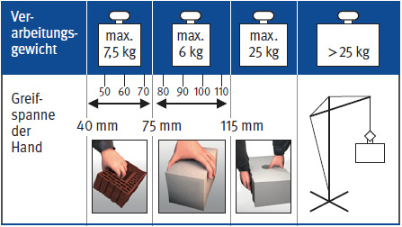 - Mauersteine mit einem Verarbeitungsgewicht* von mehr
