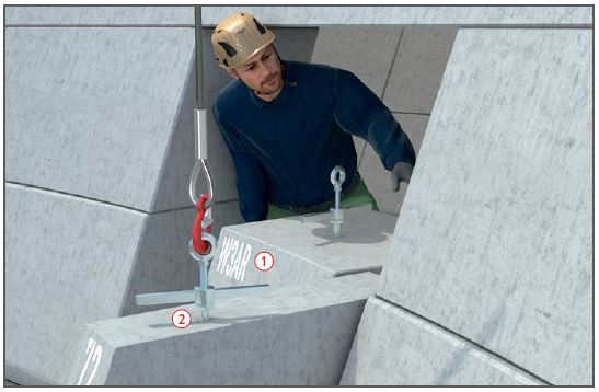 - Beim Verwenden von Vakuumhebern oder Spreizankern das Fertigteil zusätzlich gegen Herabfallen sichern.