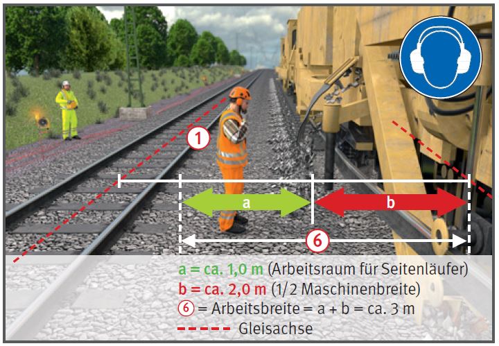 Maschinen im Arbeitsgleis freihalten.