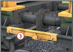 Vor Arbeitsbeginn Überfahrbrücken zwischen den Wagen einlegen.