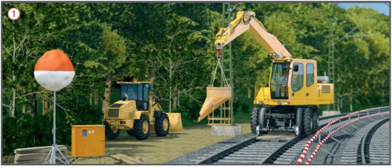 - Die spannungsführenden Teile der Fahrleitungsanlage im Arbeitsbereich grundsätzlich vom Betreiber ausschalten und erden lassen. Der Einsatz unter eingeschalteter Fahrleitungsanlage ist nur in Ausnahmefällen möglich.