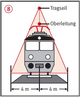(Fahrleitung, Quertragwerke, Speiseleitung, Fahrschiene) sicherstellen, Schutzabstand bei 15kV mind. 1,5 m.