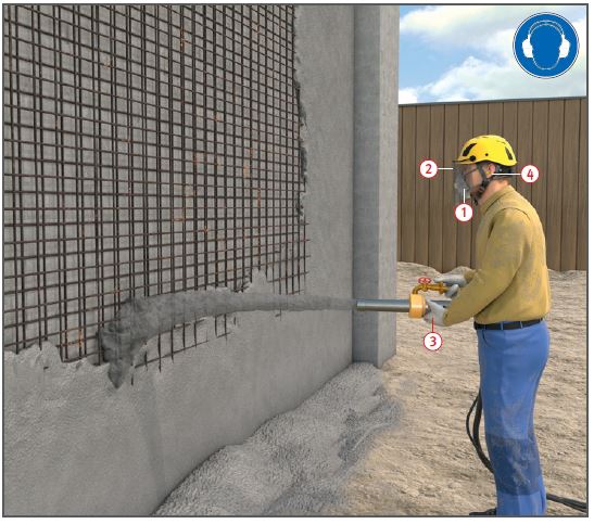 Im Gefahrbereich der Spritzbetondüse darf sich außer dem Düsenführer niemand aufhalten.