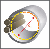 - Bei der Bestimmung des lichten Durchmessers di (Lichtmaß) sind im Rohr befindliche Einbauteile, Versorgungsleitungen oder Ähnliches zu berücksichtigen.