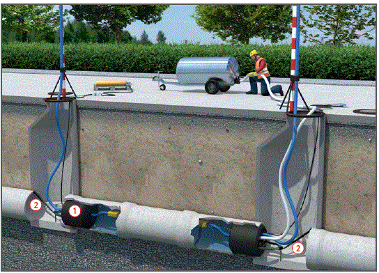 Mit Luft gefüllte Absperrblasen oder Absperrkissen in umschlossenen Räumen (Rohrleitung oder Schachtbauwerk) nur dann einsetzen, wenn sich innerhalb dieser keine Personen aufhalten.