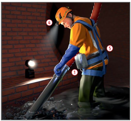 Durch gefährliche Atmosphäre im Kanal oder Bauwerk kann es zu Erstickungen oder Vergiftungen kommen.
