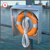 - Unabhängig von der Benutzung von Rettungswesten sind Rettungsstangen und Rettungsringe deutlich sichtbar und leicht zugänglich bereitzuhalten