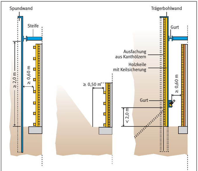 | t ≤ 1,75 | b ≥ 0,60 unverbaut mit Teilböschung |