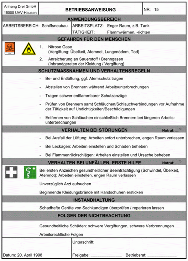 Beispiel für eine Betriebsanweisung nach Abschnitt 3.1