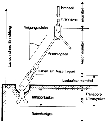 2.2 Transportankersysteme im Sinne dieser Sicherheitsregeln sind Baueinheiten, die aus dem im Betonfertigteil auf Dauer verankerten Teil (Transportanker) und dem daran vorübergehend befestigten zugehörigen Lastaufnahmemittel bestehen.