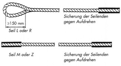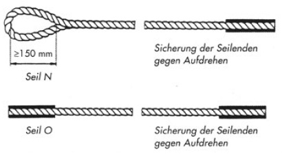 Normgerechte einsträngige Aufhängeseile (siehe Abb. 4) weisen eine Bruchkraft von mindestens 30,0 kN auf. Normgerechte zweisträngige Aufhängeseile weisen eine Bruchkraft von mindestens 15,0 kN auf.