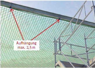 Schutznetze (Sicherheitsnetze) sind nach der Errichtung durch eine zur Prüfung befähigte Person zu prüfen.