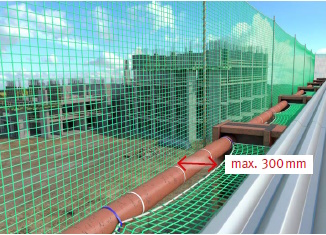 Der horizontale Abstand zwischen Netz und Absturzkante darf nicht größer als 300 mm sein.