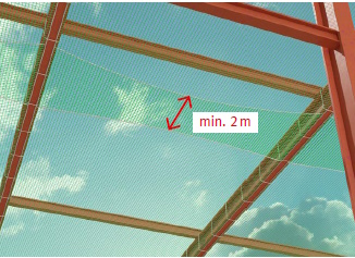 Werden Schutznetze (Sicherheitsnetze) System S überlappend ohne Kopplungsseil verwendet, muss die Überlappung mindestens 2,0 m betragen.