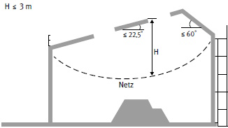 Abweichend vom Regelfall sind Schutznetze (Sicherheitsnetze) bei einer Mindestfreiraumhöhe von mehr als 3,00 m einsetzbar, wenn