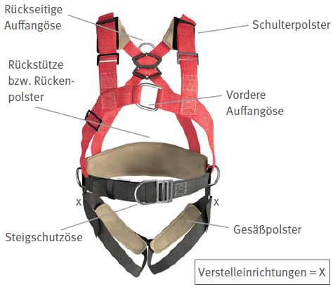 Teile der persönlichen Schutzausrüstung gegen Absturz sind