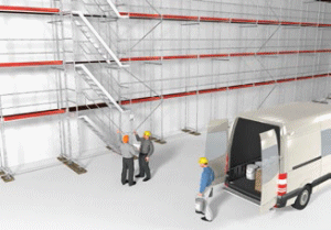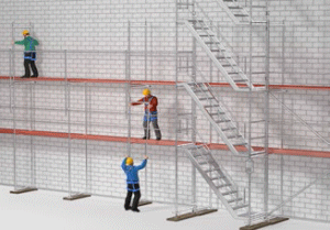 ![]() Abb. 116 Gerüstaufbau mit systemgebundenem Seitenschutz |