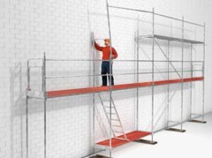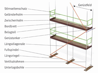 ![]() Abb. 115 Ein Gerüst ist vor der Verwendung auf offensichtliche Mängel zu überprüfen |