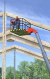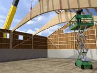 ![]() Abb. 128 Bindermontage mit Hubarbeitsbühne |