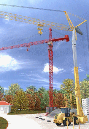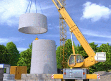 Beachten Sie bei der Baustelleneinrichtung, dass ausreichend dimensionierte (Tragfähigkeit, Hubhöhe, Reichweite) Krane zum Einsatz kommen.