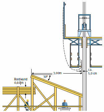 Ausführung der Absturzsicherung Stellen Sie sicher, dass der Seitenschutz ausreichend dimensioniert und so ausgeführt ist, dass ein Hindurch- oder Hinüberfallen verhindert wird.