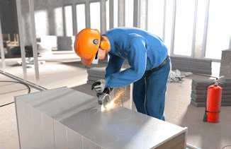 ![]() Abb. 28 Persönliche Schutzausrüstung beim Schneiden von Metall Schallpegelminderungen von 10 dB lassen das wirkende Geräusch um die Hälfte leiser empfinden. Koordinieren Sie möglichst ein zeitlich versetztes Arbeiten, wenn sekundäre Schallschutzmaßnahmen nicht einsetzbar sind. Sind technische und organisatorische Maßnahmen, wie vor beschrieben, nicht möglich, sorgen Sie für die Verwendung von geeignetem Gehörschutz.