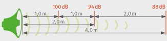 Umgebungslärm Berücksichtigen Sie, dass der Umgebungslärm, z. B. Verkehrslärm oder Lärm aus bestehenden Anlagen zusätzlich zur Lärmbelastung am Arbeitsplatz einwirkt. ![]() Abb. 29 Schallpegelabnahme durch Entfernung |