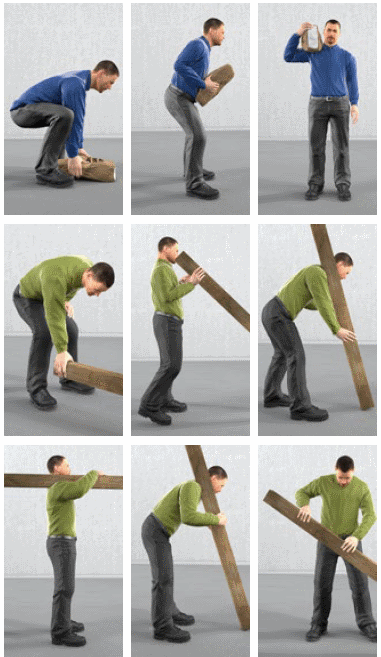 Wählen Sie bei Neuanschaffungen grundsätzlich staub-, vibrations- und lärmgeminderte Maschinen, Fahrzeuge und Geräte aus. Arbeitsabläufe Berücksichtigen Sie bei der Organisation der Arbeitsabläufe auch ergonomische Gesichtspunkte, um eine Übereinstimmung der Anforderungen einer Tätigkeit mit den Fähigkeiten und Fertigkeiten des Mitarbeiters zu erreichen. Vermeiden Sie lange Transportwege, lassen Sie direkt an den Einbauort liefern. Sorgen Sie dafür, dass ein regelmäßiger Wechsel der Arbeitshaltungen oder auch der Arbeitstätigkeiten erfolgt. Das verteilt die Belastungen auf mehrere Mitarbeiter. Verhalten Achten Sie darauf, dass bei Bedarf passende persönliche Schutzausrüstung mit möglichst hohem Tragekomfort, z. B. Knieschutzhosen mit dazugehörigen Einlegepolstern, verwendet wird. Weisen Sie Beschäftigte in neue Arbeitsverfahren, Maschinen und Geräte ein. Neues bedarf der bewussten Übung. Zeigen Sie Ihren Beschäftigten rückengerechte Hebe- und Tragetechniken (siehe Abbildungen 34). ![]() Abb. 34 Hebe- und Tragetechniken Weisen Sie Ihre Beschäftigten in geeignete Ausgleichsübungen ein. ![]() Abb. 35 Ausgleichsübungen