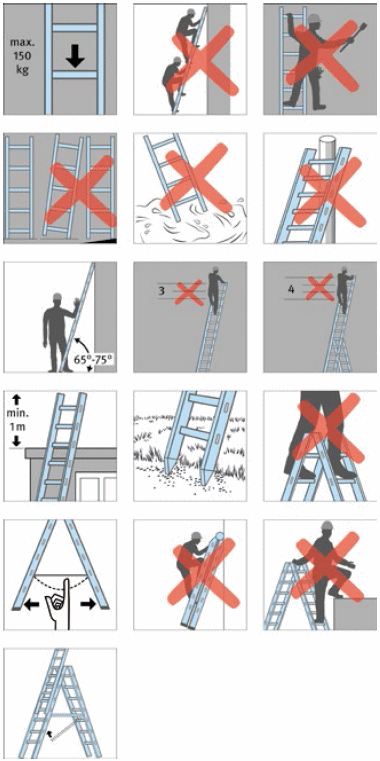 Achten Sie bei einem Einsatz von Leitern insbesondere auf folgende Gefährdungen: