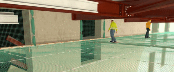 Absturzsicherung Sorgen Sie vorranging durch technische Maßnahmen dafür, dass die Gefährdung durch Absturz von Personen an Absturzkanten, Öffnungen oder auf den montierten Fertigteilen selbst, so gering wie möglich gehalten wird. Geeignet ist die Verwendung von Seitenschutz. Nachrangig können Fanggerüste oder Auffangnetze Anwendung finden. Binder, Riegel und Mauerkronen sind als Arbeitsplatz und Verkehrsweg ungeeignet.