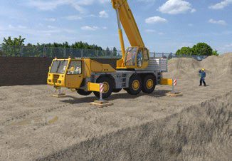 Standsicherheit Achten Sie darauf, dass die Hubarbeitsbühne in keine Bodenvertiefungen und immer auf tragfähigen Untergrund aufgestellt bzw. gefahren wird. Die Abstützung erfolgt gemäß der Betriebsanleitung. Die Unterlegplatten müssen so groß sein, dass die angegeben Kräfte vom Untergrund aufgenommen werden können.
