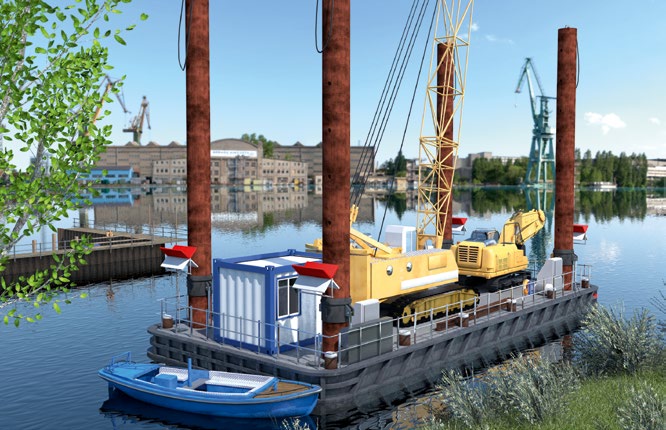 • die Positionen der Maschinen/Geräte auf dem Schwimmenden Gerät zu berücksichtigen.