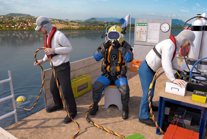 Die Durchführung von Taucherarbeiten birgt zahlreiche Gefahren. Eine sorgfältige Planung der Taucharbeiten und der Notfallmaßnahmen reduziert das Risiko eines Tauchunfalls.