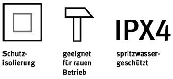 Setzen sie nur Verlängerungsleitungen der Bauart H07RN-F oder H07BQ-F ein. Beschaffen Sie Leitungsroller (Kabeltrommeln) aus Kunststoff bei denen der Trage- und Kurbelgriff isoliert ist. Kabeltrommeln sollten mindestens die Schutzart IP 44 erfüllen.