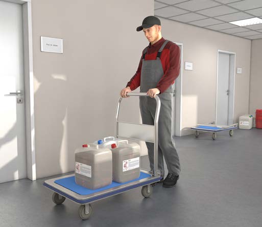 Die erforderlichen Schutzmaßnahmen ergeben sich aus den örtlichen Gegebenheiten, den Arbeitsverfahren und dem eingesetzten Personal. Stolpern, Rutschen, Stürzen Sorgen Sie dafür, dass die Beschäftigten geeignetes – mindestens fersenumschließendes- feuchtigkeitsdichtes Schuhwerk mit Rutschhemmung verwenden. Schuhe/Stiefel der Kategorie S3/S5 erfüllen diese Anforderungen. ![]() Abb. 70 Einscheibenmaschine mit PRCD-S Umgang mit Reinigungsmitteln und Feuchtarbeit Grundreiniger sind Reinigungsmittel, die Reizungen oder Verätzungen der Haut und schwere Augenschäden verursachen können. Besteht Spritzgefahr, z. B. beim Ansetzen der verdünnten Reinigungsflotte, ist als Augenschutz eine Korbbrille zu tragen. Als Handschutz eignen sich Chemikalienschutzhandschuhe aus Naturlatex, Nitril- oder Butylkautschuk. Einmal-Chemikalienschutzhandschuhe sind ungeeignet. Als Körperschutz sind geschlossene, langärmelige Arbeitskleidung sowie Gummistiefel oder flüssigkeitsdichte Schuhe erforderlich. Werden Grundreiniger eingesetzt, die die Stoffe 2-Butoxyethanol oder Limonen enthalten (GISCODE: GG60, GG90), müssen die Arbeiten bei geöffneten Fenstern und Türen durchgeführt werden. Trotzdem kann der Arbeitsplatzgrenzwert überschritten und zusätzlich Atemschutz (z. B. Halbmaske mit Gasfilter A1) erforderlich werden. Grundreiniger ohne 2-Butoxyethanol oder Limonen sind vorzuziehen. Bei diesen sind auch Überschreitungen von Arbeitsplatzgrenzwerten nicht zu erwarten. Dennoch sollte der Arbeitsbereich auch beim Einsatz dieser Produkte nach Möglichkeit gut gelüftet werden. Beim Einsatz von Grundreinigungsmitteln sind aufgrund der hohen Gefährdung bei Augen- oder Hautkontakt sofortige Erste-Hilfe-Maßnahmen erforderlich. Nach Augenkontakt ist 10 Minuten unter fließendem Wasser bei gespreizten Lidern zu spülen. Es ist immer eine augenärztliche Sprechstunde aufzusuchen. Nach Hautkontakt sind betroffene Stellen mindestens 15 Minuten unter fließendes kaltes Wasser zu halten. Saure Grundreinigungsmittel dürfen nicht in Kontakt mit hypochlorithaltigen Reinigungsmitteln kommen, da sonst giftiges Chlorgas entsteht. Absturz von Leitern Lässt sich der Leitereinsatz nicht umgehen, wählen Sie die sicherste Art der Leiter aus (z. B. Podestleiter). Unterweisen Sie Ihr Personal im Umgang mit dem ausgewählten Arbeitsmittel. Elektrische Gefährdung Schutzisolierte Maschinen sind gekennzeichnet mit folgendem Symbol: ![]() Bei diesen ist nur ein Schutzadapter ohne Schutzleiterüberwachung (PRCD) erforderlich. Heben und Tragen Mechanische Gefährdung |