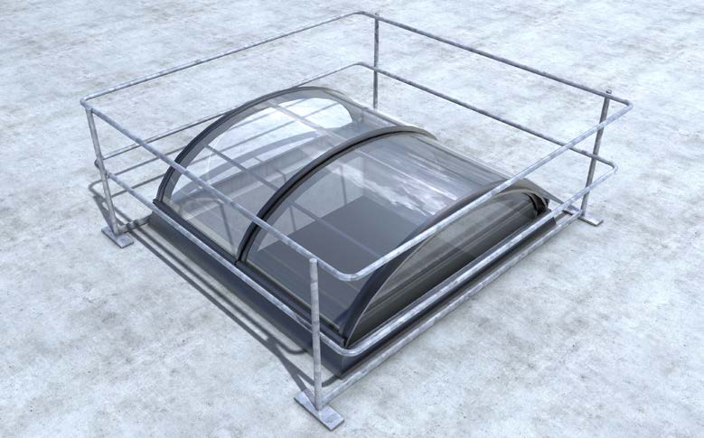 Auf Baustellen und Gerüsten müssen Umwehrungen immer mindestens 1,0 m hoch sein. Lassen sich keine Absturzsicherungen einrichten, sind nachrangig persönliche Schutzausrüstungen gegen Absturz als individuelle Schutzmaßnahme zu verwenden. Beachten Sie, dass bei der Verwendung von PSAgA weiterführende Maßnahmen notwendig sind, z. B. Einweisung, spezielle Unterweisung mit praktischer Übung, Rettungskonzept. Legen Sie vor Beginn der Arbeiten die geeigneten Anschlagpunkte fest und sorgen Sie dafür, dass die PSAgA benutzt wird. Berücksichtigen Sie vor der Verwendung der PSAgA, dass mögliche Hindernisse (z. B. Maschinen) den erforderlichen Freiraum einschränken und damit zu Verletzungen durch Aufprall führen oder das Verbindungssystem beschädigen können. Auf flach geneigten Flächen kann auf Absturzsicherungen verzichtet werden, wenn der Gefahrenbereich 2,0 m von der Kante entfernt zum Beispiel mit einer Kette abgesperrt ist. Bodenöffnungen sind gegen Hineintreten und Absturz zu sichern. Dies kann durch Einbau tragfähiger und unverschiebbarer Abdeckungen oder durch Seitenschutz erfolgen. ![]() Abb. 4 Sicherung Lichtkuppel Sicherung gegen Durchsturz Ist die Tragfähigkeit nicht gegeben oder lässt sie sich nicht nachweisen, sorgen Sie dafür, dass die Gefahr des Durchstürzens verringert wird. Dies kann zum Beispiel durch lastverteilende Beläge in Kombination mit Absturzsicherung (z. B. Seitenschutz) erreicht werden, von denen aus dann die Arbeiten sicher durchgeführt werden können. Für Arbeiten und Verkehrswege im Gefahrenbereich (Abstand ≤ 2,0 m) von nicht durchtrittsicheren Lichtkuppeln und Lichtbändern ist sicherzustellen, dass durch Absperrungen oder Abdeckungen ein Absturz verhindert wird. Hierauf kann verzichtet werden, wenn der Aufsatzkranz des nicht durchtrittsicheren Bauteils, z. B. der Lichtkuppel, mindestens 0,50 m über die Dachfläche hinausragt. |