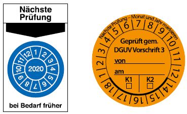 Bestimmen Sie die Intervalle von Prüfungen bzw. Wiederholungsprüfungen mittels Ihrer Gefährdungsbeurteilung. Berücksichtigen Sie hierbei mögliche Vorgaben durch die Hersteller in den Betriebsanleitungen. Nach Beschädigungen, die sicherheitsrelevant sein können, ist eine Prüfung vor der weiteren Nutzung erforderlich. Sorgen Sie dafür, dass Prüfungen von zur Prüfung befähigten Personen durchgeführt werden. Als Nachweis über die von Ihnen veranlassten Prüfungen ist ein Prüfaufkleber zu empfehlen. Lärm Zwangshaltung Vermeiden Sie länger andauernde Zwangshaltungen, in dem sich beispielsweise die Beschäftigten bei der Bedienung der Maschine abwechseln. ![]() Abb. 40 Beispiel einer Prüfkennzeichnung |