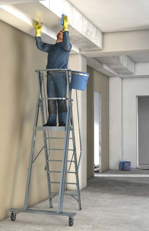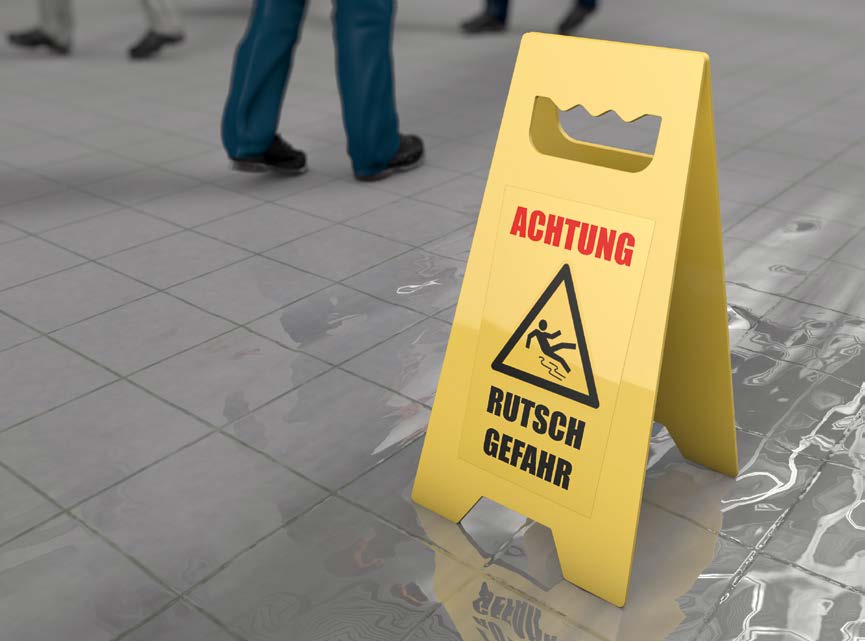 Bei Reinigungsarbeiten auf höher gelegenen Arbeitsplätzen ohne entsprechende Schutzmaßnahmen besteht grundsätzlich Absturzgefahr. Unfälle mit bleibenden Beeinträchtigungen der Gesundheit können schon beim Absturz aus geringen Höhen die Folge sein. Achten Sie bei der Nutzung von höher gelegenen Arbeitsplätzen oder Verkehrswegen insbesondere auf die folgenden Gefährdungen:
