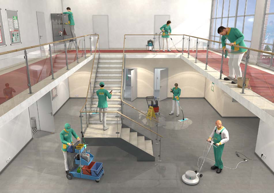 Körperliche Belastungen der Beschäftigten sind auch in der Gebäudereinigung von Bedeutung. Die ergonomische Gestaltung von Arbeitsplätzen und -mitteln kann Erkrankungen verhindern, die Gesundheit sowie die Arbeitsfähigkeit der Beschäftigten fördern und die Produktivität des Unternehmens steigern.