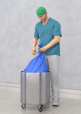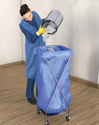 Feuchtarbeit Stich- und Schnittverletzung Da eine unsachgemäße Entsorgung nicht auszuschließen ist, weisen Sie Ihr Personal darauf hin, nicht in Abfallbehältnisse (auch Wäschesäcke) hineinzugreifen und diese stets körperfern zu halten. Der Transport sollte in Wagen erfolgen, die seitlich geschlossen sind. Sollten dennoch Spritzen, Kanülen aufgefunden werden, weisen Sie Ihre Beschäftigten darauf hin, diese nicht selbst zu entsorgen, sondern die Krankenhausbetreiber zu informieren. ![]() Abb. 82 Entnahme Müllsack ohne Gefahr der Stichverletzung Schutz vor Infektion