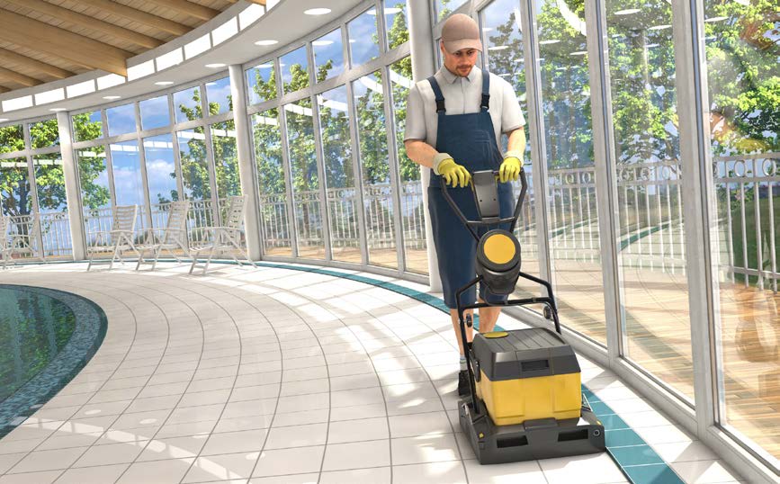Die Schwimmbadreinigung umfasst die Reinigung von Verkehrsflächen, Umkleide-, Dusch- und Sanitärbereichen, Wellnessanlagen und Schwimmbecken im Innen- und Außenbereich. Gefährdungen ergeben sich insbesondere durch die feuchte Umgebung (erhöhte Rutschgefahr), eingesetzte Arbeitsmittel und Arbeitsstoffe.