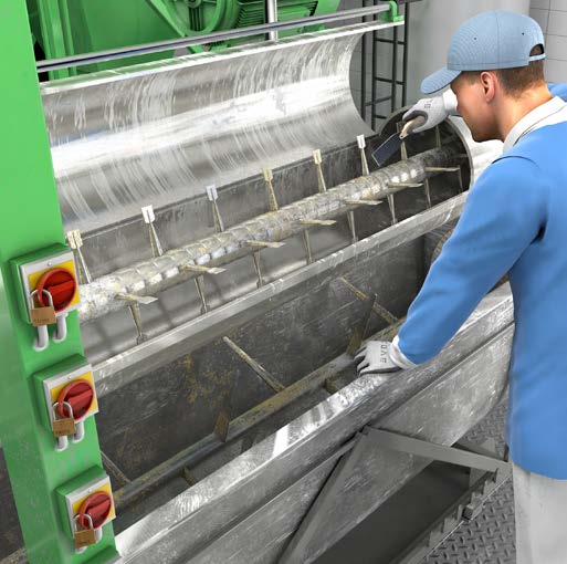 Bei Reinigungsarbeiten an Produktionsanlagen selbst sowie in deren Umfeld können sich folgende Gefährdungen ergeben: