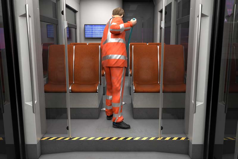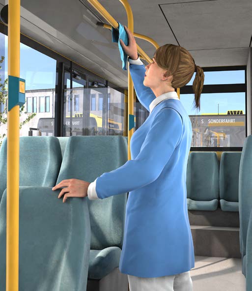 Die Reinigung von Verkehrsmitteln umfasst neben Bussen und Bahnen auch Flugzeuge. Der Umfang der Reinigungsarbeiten beinhaltet neben der Innen- oft auch die Außenreinigung des jeweiligen Verkehrsmittels. Bei der Unterhaltsreinigung, der Sanitär-, Glas- und Sonderreinigung ergeben sich zusätzliche Gefährdungen durch die sehr begrenzten Reinigungszeiten, die engen Einsatzbereiche sowie die Arbeitsumgebung.