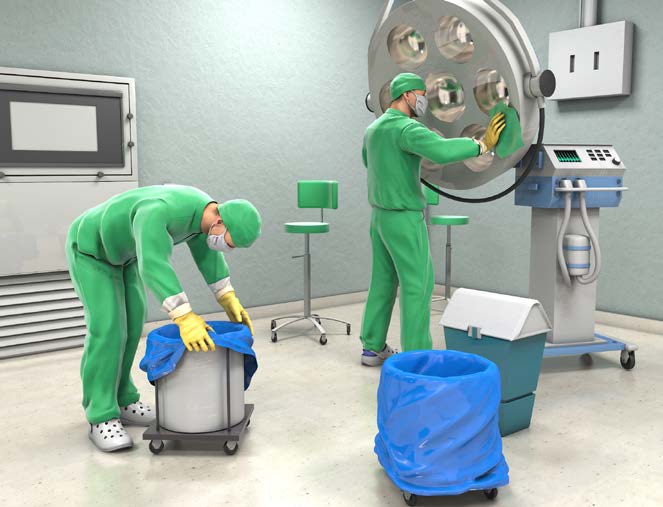 In Krankenhäusern werden Reinigungsarbeiten in allen Bereichen durchgeführt. Dabei unterscheiden sich diese in nicht-hygienerelevante Bereiche, hygienerelevante Bereiche, Bereiche, die besonders vor Infektionen geschützt werden müssen, und Bereiche, von denen besondere Infektionsgefahren ausgehen können. Gefährdungen können sich daher aus den eingesetzten Arbeitsmitteln und Arbeitsstoffen, insbesondere den Reinigungs- und Desinfektionsmitteln, aber auch aus der besonderen Arbeitsumgebung ergeben.